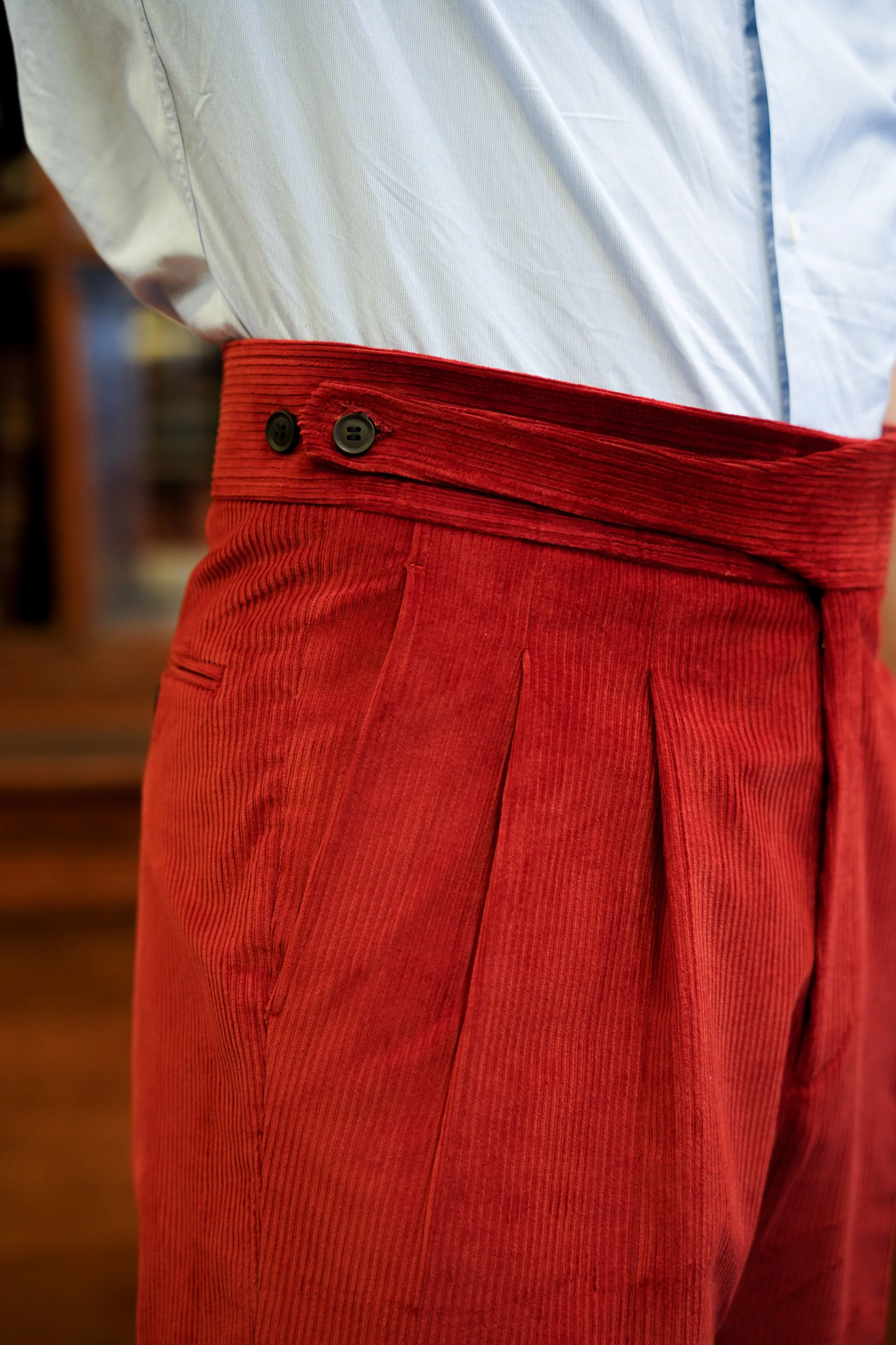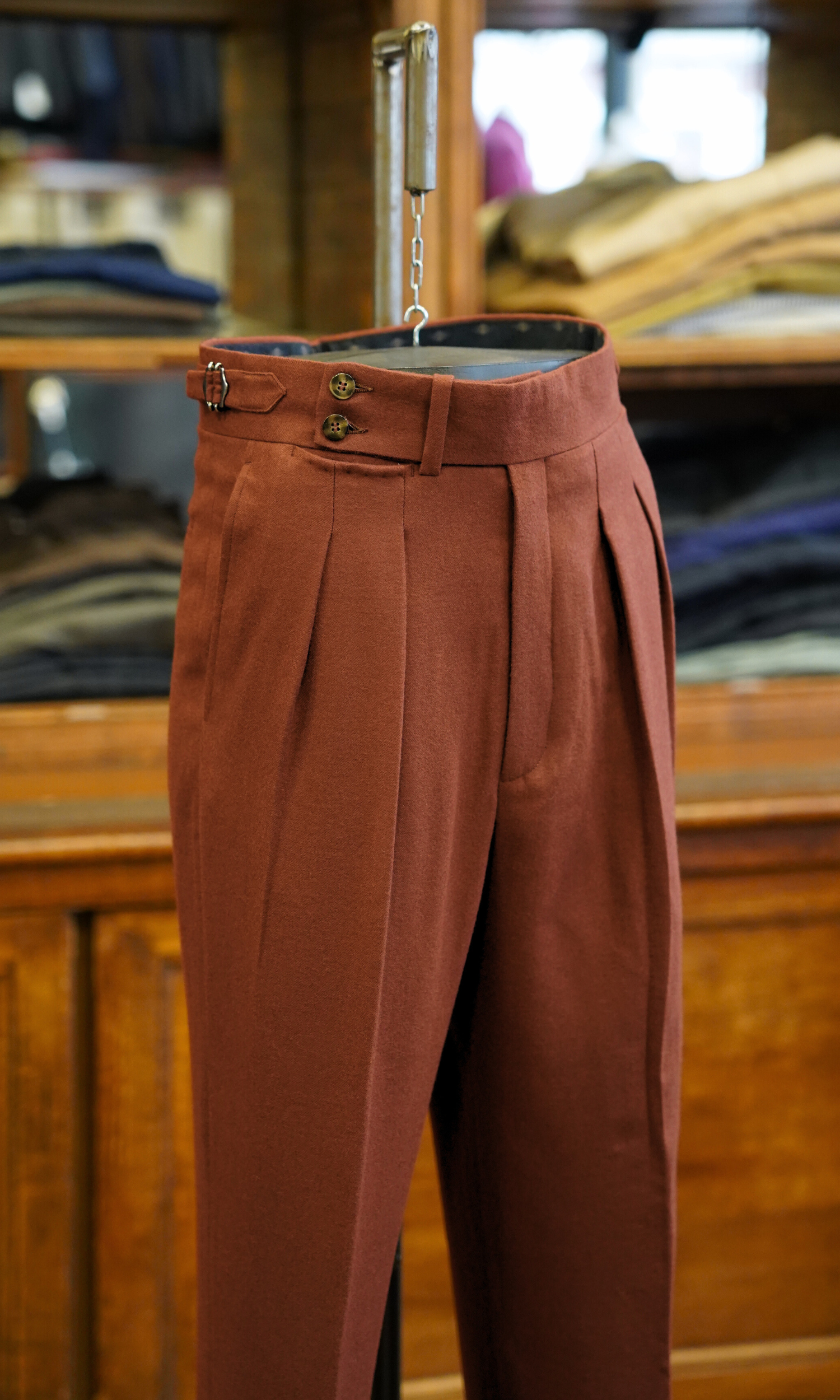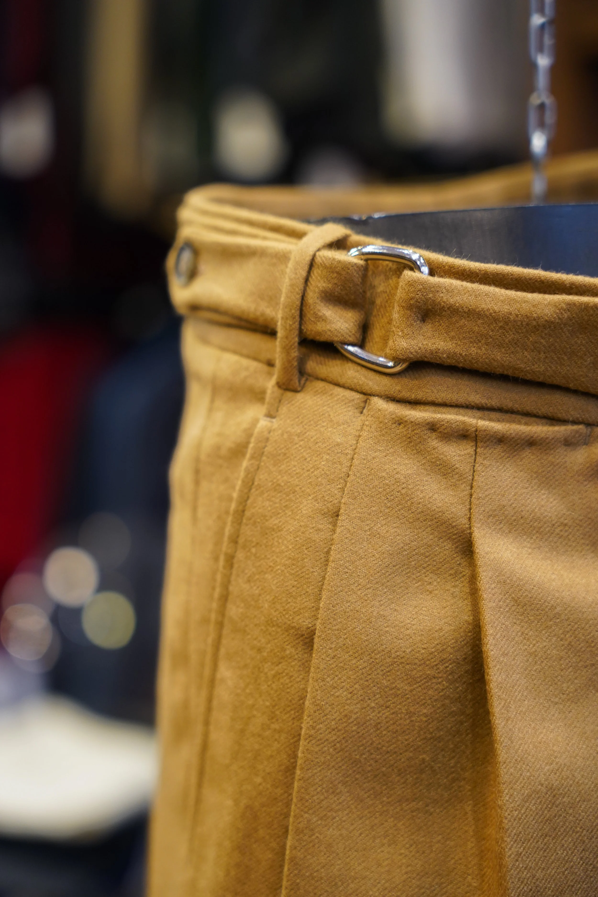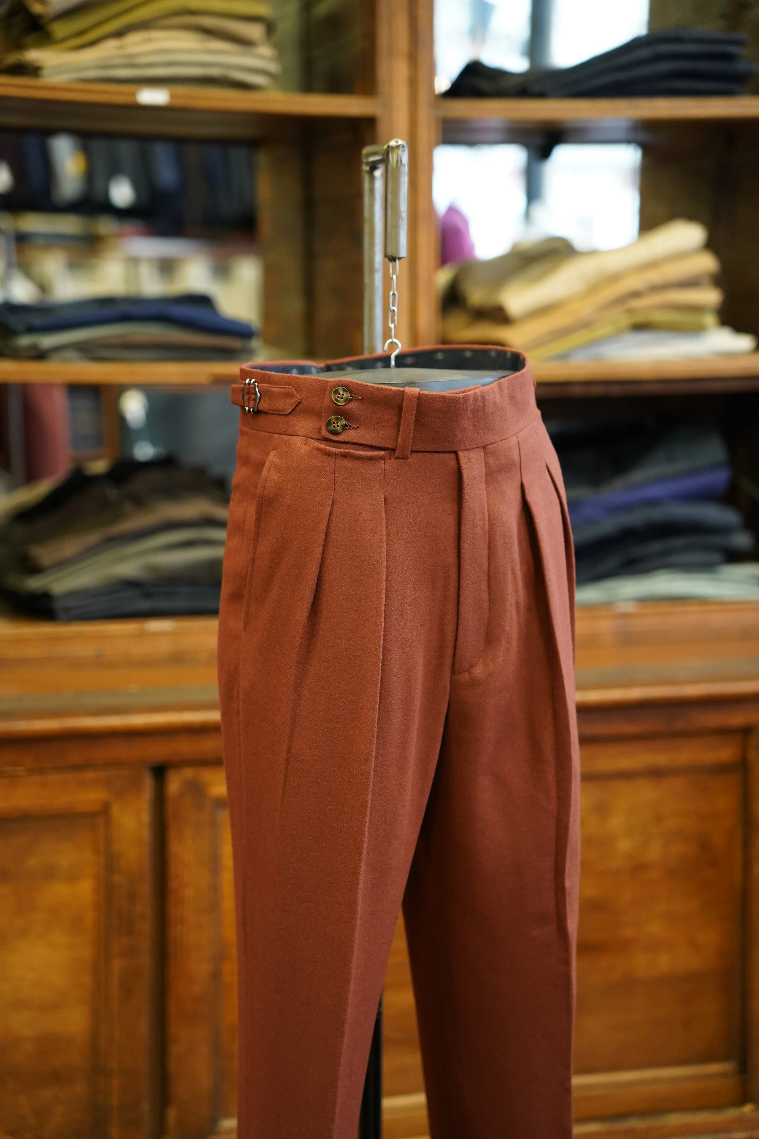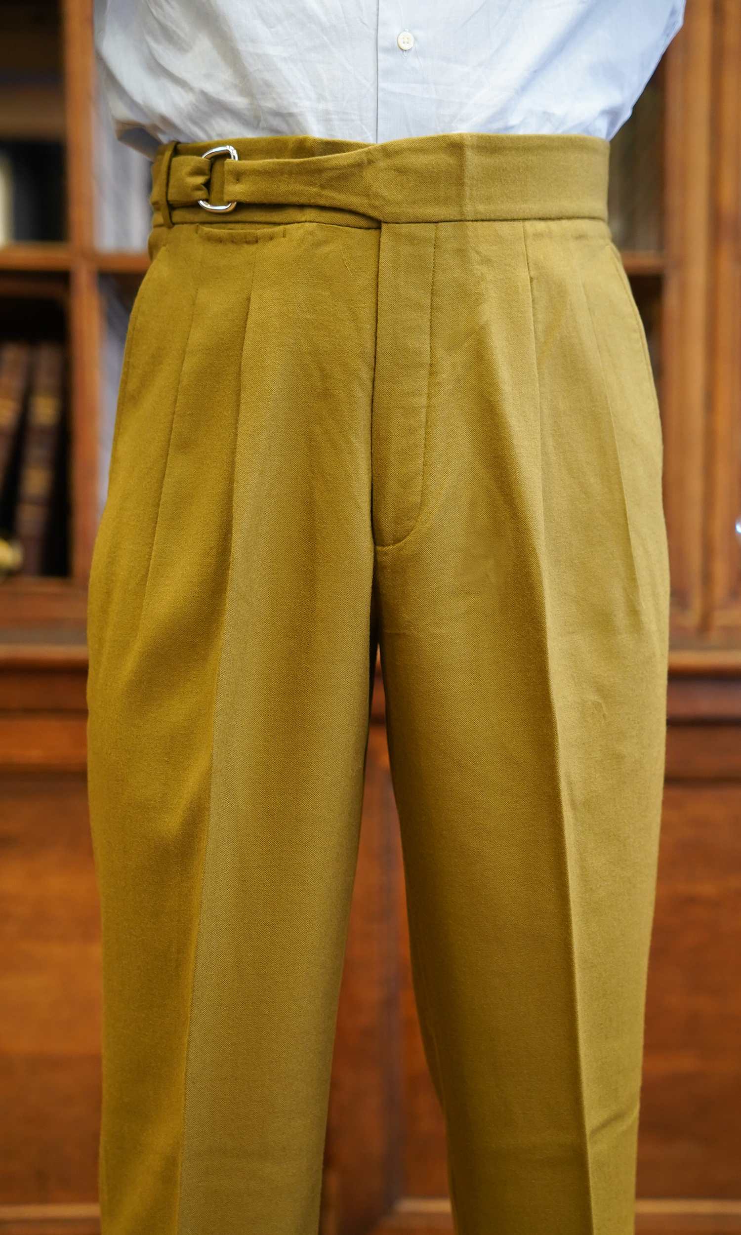 L’automne s’installe. Nos pantalons jouent les essentiels : laine, velours et coton épais, rehaussés de détails tailleur (Hollywood, Gurkha, D-ring, ajusteurs). Disponibles dans notre silhouette taille haute et coupe droite.