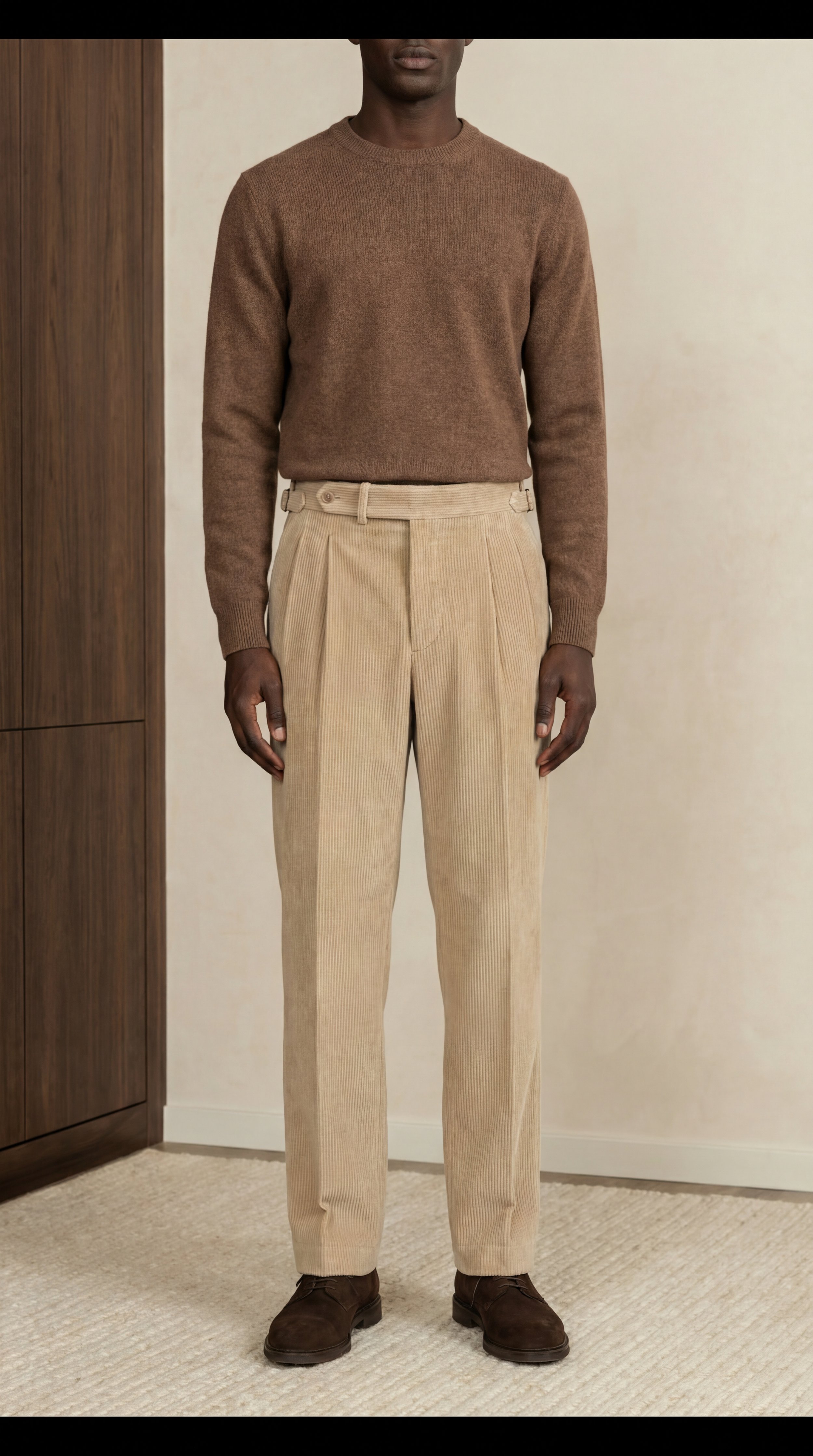 Pantalon chiné marron foncé en laine