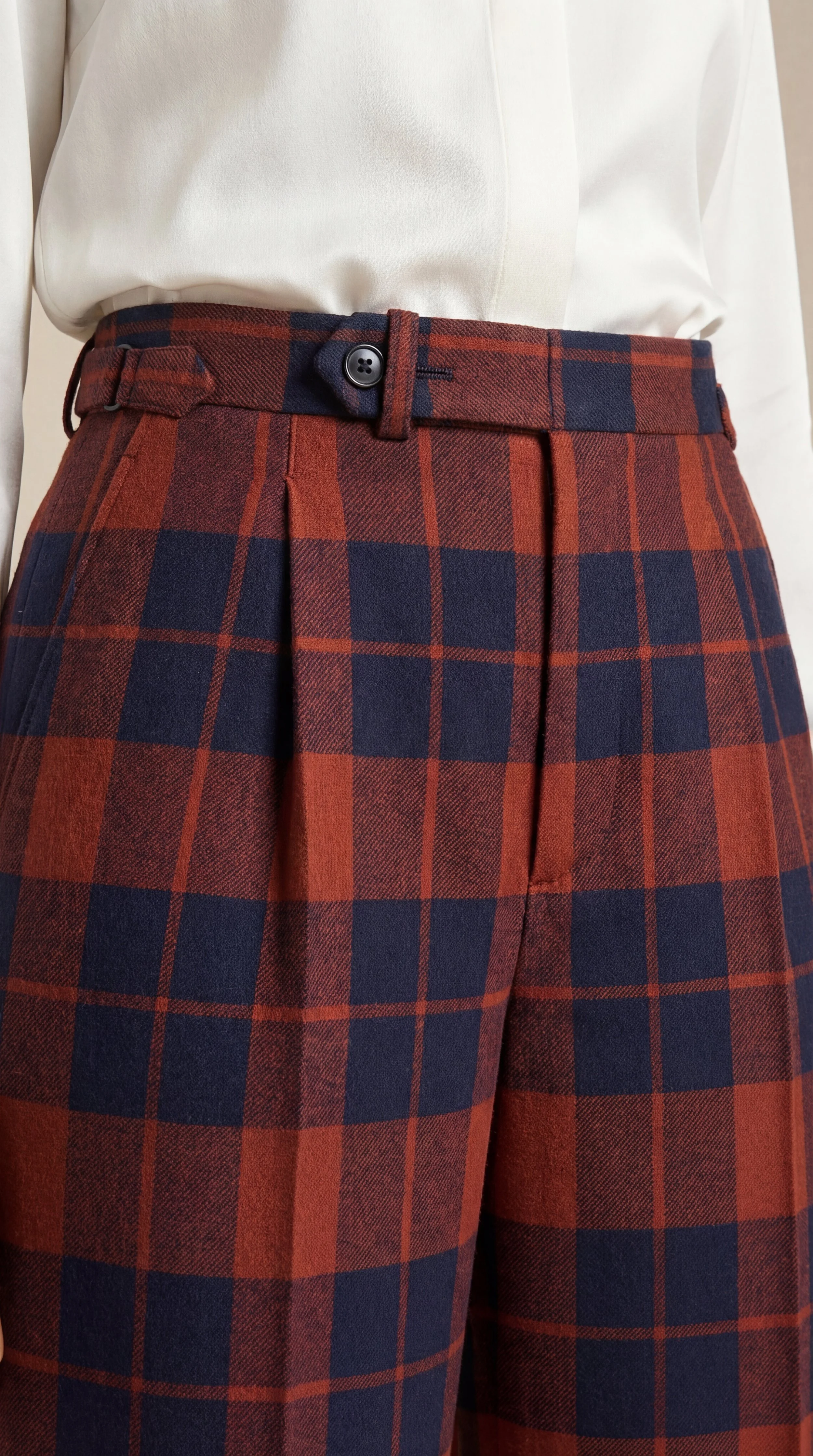 Une taille haute qui sculpte l'allure et libère la démarche, avec son pli italien, ses ajusteurs latéraux et ce bas subtilement évasé. Le pantalon Asfemme réinvente le pantalon tailleur pour femmes. Nos pantalons sont disponibles en boutique au 5 Rue Pasquier, 75008 Paris.