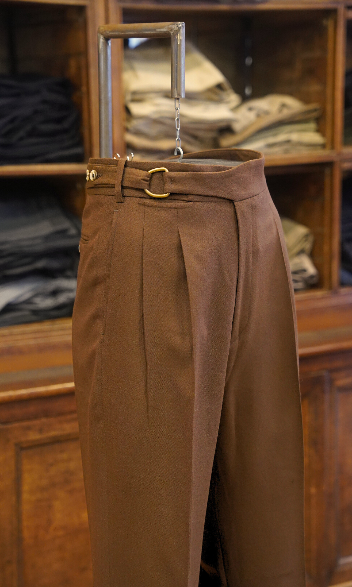 Ce Pantalon D-Ring en flanelle brun cognac au poids moyen (320 gr) est idéal pour le printemps et l’automne et l’hiver. Il a été réalisé dans notre coupe “ Paris “, une taille haute avec une jambe droite, voir guide de tailles. Ce modèle possède deux pinces profondes.